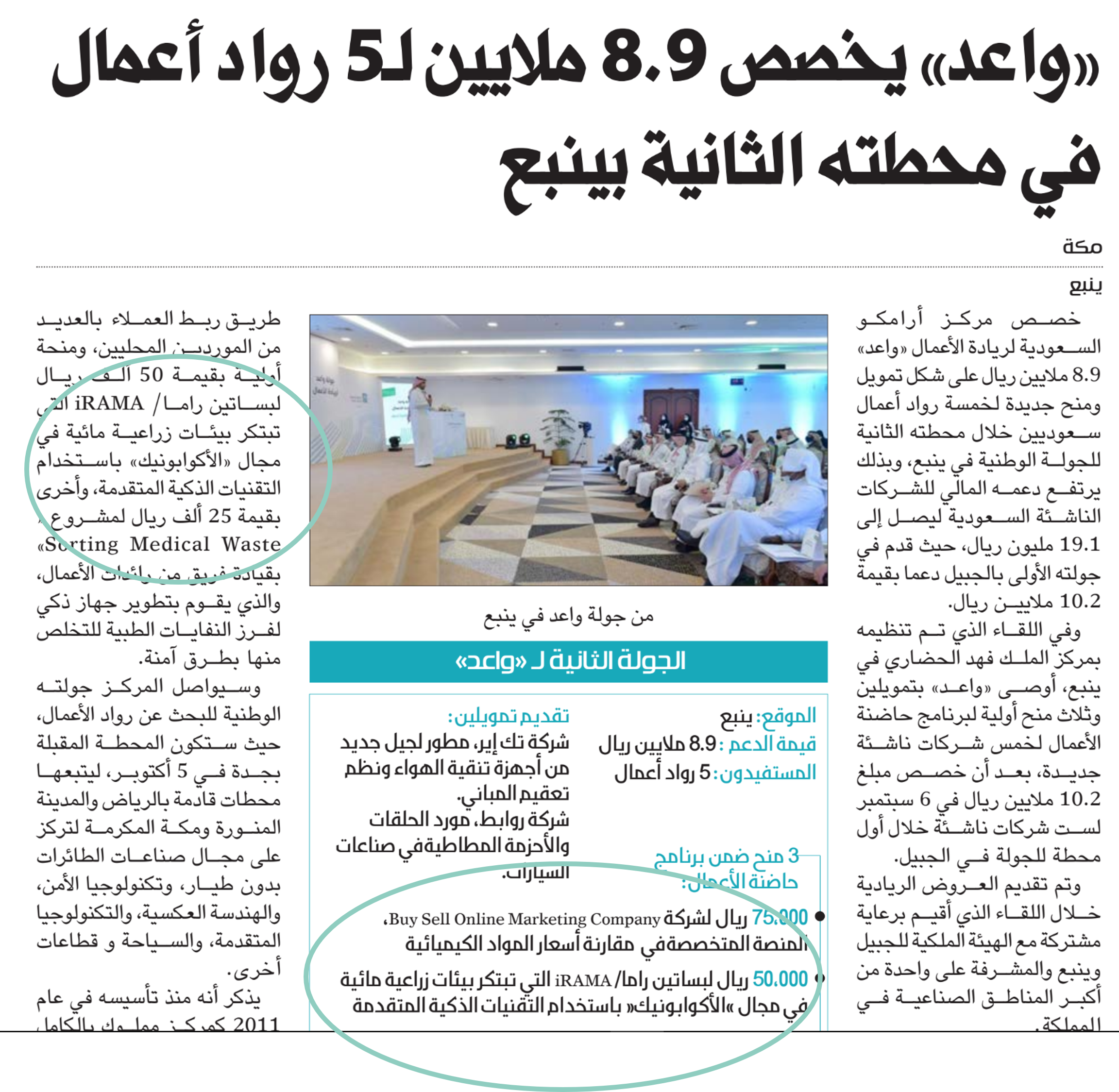 أوصى واعد بتقديم منحة أولية بقيمة 50.000 ريال لبساتين راما التي تبتكر بيئات زراعية مائية في مجال الأكوابونيك باستخدام التقنيات الذكية المتقدمة